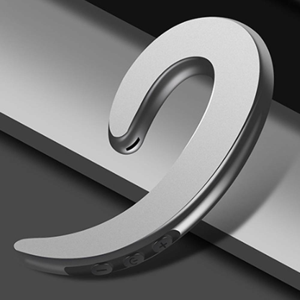 Introducing the all-new Silver Bone Conduction Earphones! These earphones feature supreme audio and bass quality, an instant Bluetooth connection with any smartphone or laptop, and a 20+ hour battery life on a single charge. They are also ergonomically designed for a comfortable fit, fully waterproof, and shock resistant. With these earphones, you'll enjoy a hands-free listening experience like never before. So don't wait any longer, order your Silver Bone Conduction Earphones today!