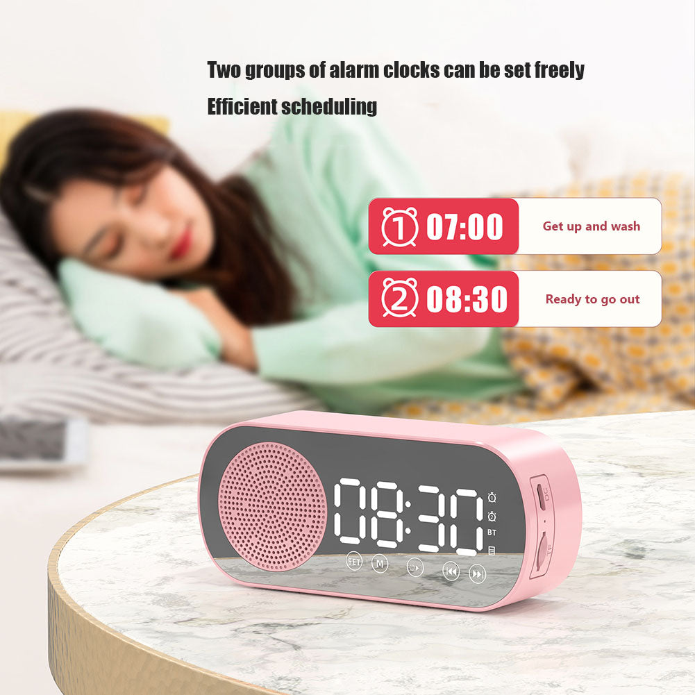 The LED Screen Sound Bar is a multifunctional, portable speaker that is Bluetooth-compatible and features a mirror surface clock, double alarm, support for TF cards, FM radio, and a LED screen. This sound bar is perfect for any music lover, as it delivers clear, high-quality sound that will fill any room. The sleek design of the speaker is perfect for any home décor, and the LED screen provides a visual display that is both stylish and functional. The speaker also features a built-in microphone that allows you to take calls hands-free. With so many features and benefits, the LED Screen Sound Bar is the perfect addition to any home.